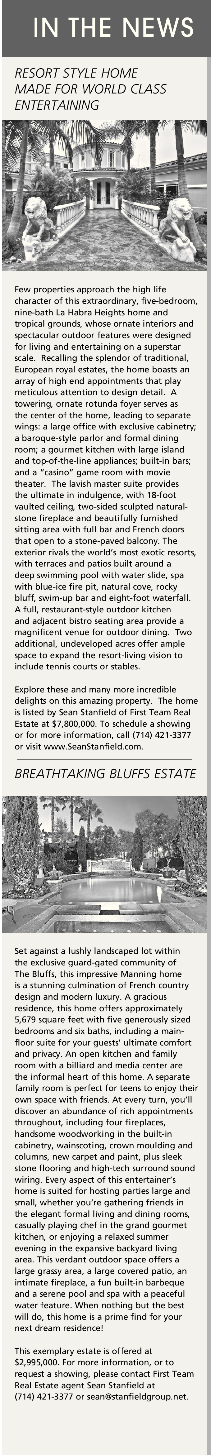 This exemplary estate is offered at $2,995,000. For more information, or to request a showing, please contact First Team Real Estate agent Sean Stanfield at (714) 421-3377 or sean@stanfieldgroup.net.