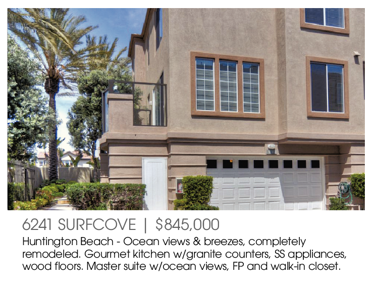 6241 SURFCOVE | $845,000 Huntington Beach - Ocean views & breezes, completely remodeled. Gourmet kitchen w/granite counters, SS appliances, wood floors. Master suite w/ocean views, FP and walk-in closet.