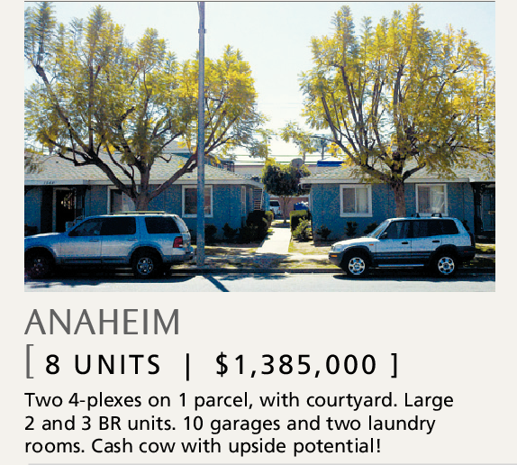 Two 4-plexes on 1 parcel, with courtyard. Large 2 and 3 BR units. 10 garages and two laundry rooms. Cash cow with upside potential!