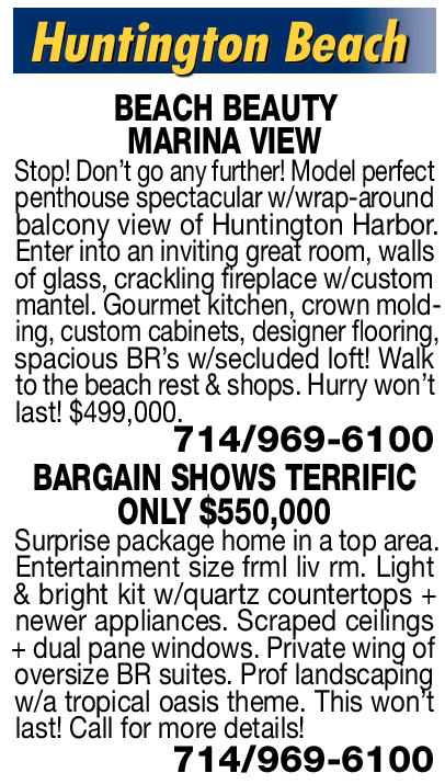 BEACH BEAUTY MARINA VIEW Stop! Don’t go any further! Model perfect penthouse spectacular w/wrap-around balcony view of Huntington Harbor. Enter into an inviting great room, walls of glass, crackling fireplace w/custom mantel. Gourmet kitchen, crown molding, custom cabinets, designer flooring, spacious BR’s w/secluded loft! Walk to the beach rest & shops. Hurry won’t