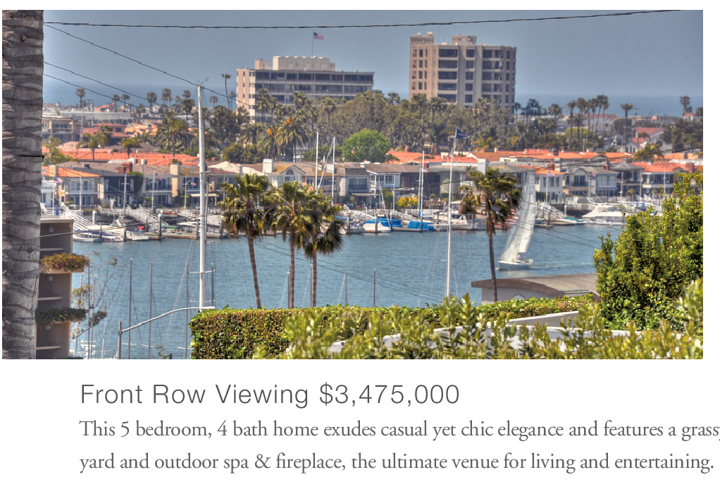 Front Row Viewing $3,475,000 This 5 bedroom, 4 bath home exudes casual yet chic elegance and features a grassy yard and outdoor spa & fireplace, the ultimate venue for living and entertaining.