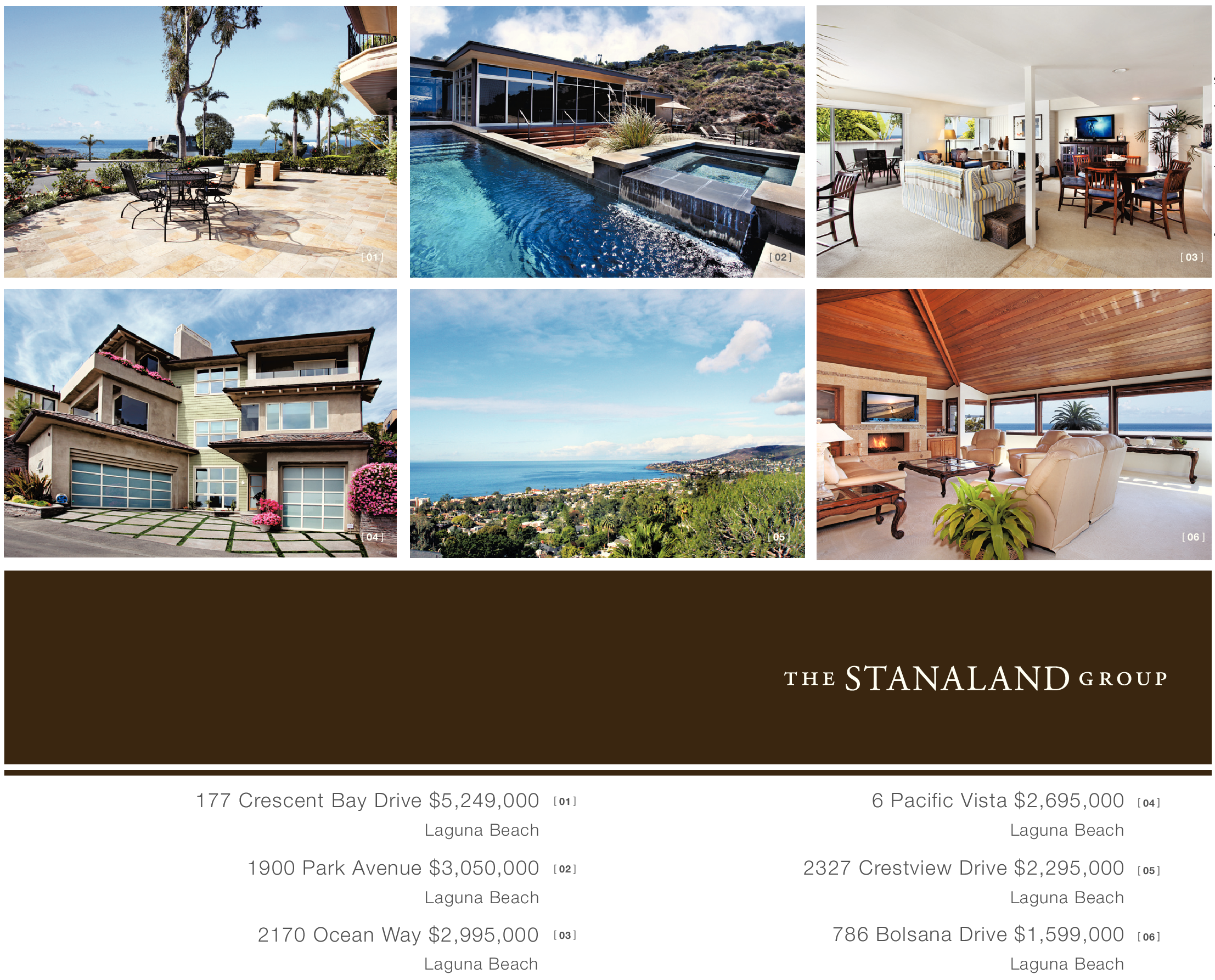 [ 01 ] [ 02 ] [ 04 ] [ 05 ] 177 Crescent Bay Drive $5,249,000 Laguna Beach 1900 Park Avenue $3,050,000 Laguna Beach 2170 Ocean Way $2,995,000 Laguna Beach [ 01 ] [ 02 ] [ 03 ] 6 Pacific Vista $2,695,000 Laguna Beach 2327 Crestview Drive $2,295,000 Laguna Beach 786 Bolsana Drive $1,599,000 Laguna Beach [ 04 ] [ 05 ] [ 06 ] [ 03 ] [ 06 ]