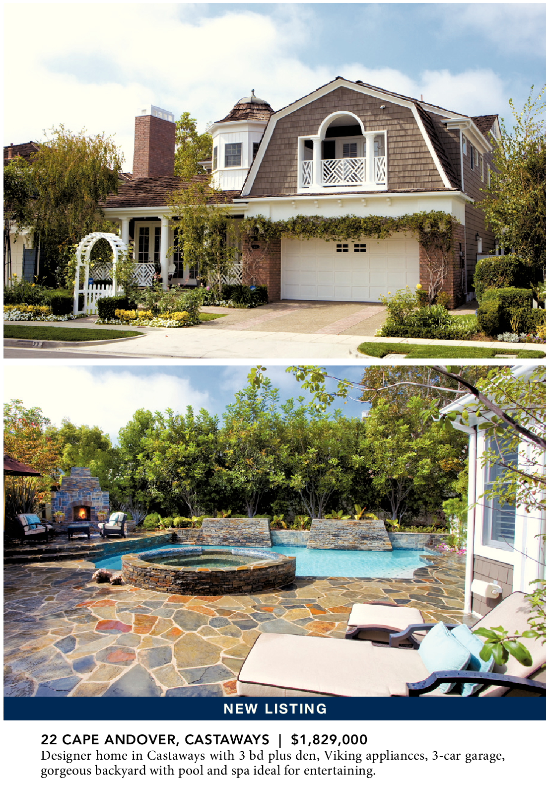 22 CAPE ANDOVER, CASTAWAYS | $1,829,000 Designer home in Castaways with 3 bd plus den, Viking appliances, 3-car garage, gorgeous backyard with pool and spa ideal for entertaining.