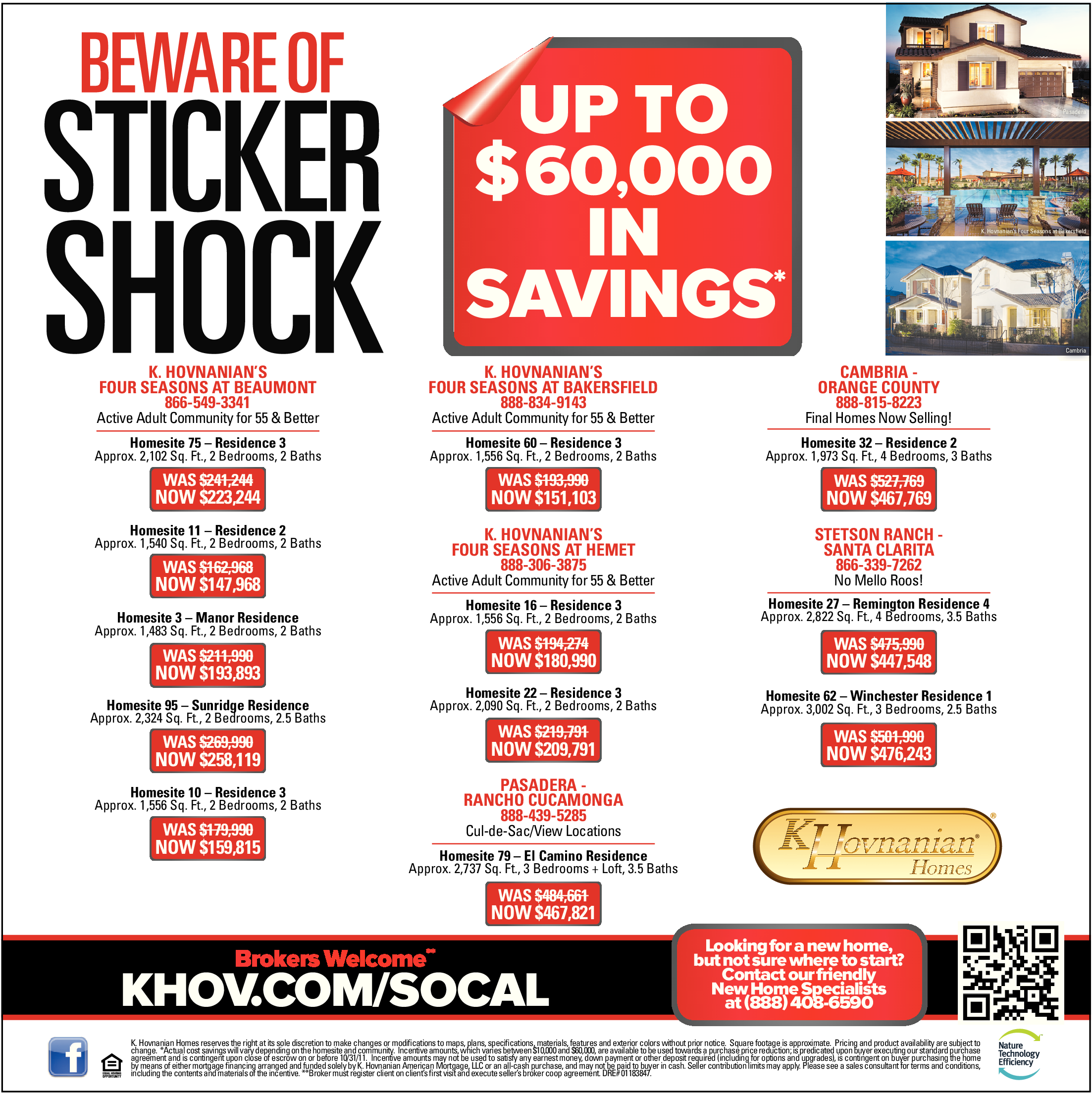K. Hovnanian Homes reserves the right at its sole discretion to make changes or modifications to maps, plans, specifications, materials, features and exterior colors without prior notice. Square footage is approximate. Pricing and product availability are subject to change. *Actual cost savings will vary depending on the homesite and community. Incentive amounts, which varies between $10,000 and $60,000, are available to be used towards a purchase price reduction; is predicated upon buyer executing our standard purchase agreement and is contingent upon close of escrow on or before 10/31/11. Incentive amounts may not be used to satisfy any earnest money, down payment or other deposit required (including for options and upgrades), is contingent on buyer purchasing the home by means of either mortgage financing arranged and funded solely by K. Hovnanian American Mortgage, LLC or an all-cash purchase, and may not be paid to buyer in cash. Seller contribution limits may apply. Please see a sales consultant for terms and conditions, including the contents and materials of the incentive. **Broker must register client on client’s first visit and execute seller’s broker coop agreement. DRE# 01183847.