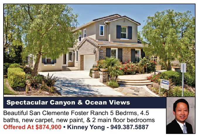 Beautiful San Clemente Foster Ranch 5 Bedrms, 4.5 baths, new carpet, new paint, & 2 main floor bedrooms Offered At $874,900 • Kinney Yong - 949.387.5887