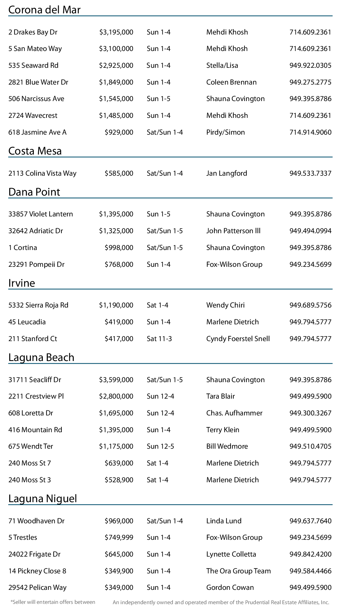 31711 Seacliff Dr $3,599,000 Sat/Sun 1-5 Shauna Covington 949.395.8786