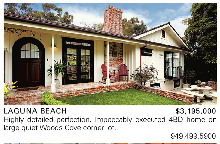 LAGUNA BEACH $3,195,000 Highly detailed perfection. Impeccably executed 4BD home on large quiet Woods Cove corner lot.