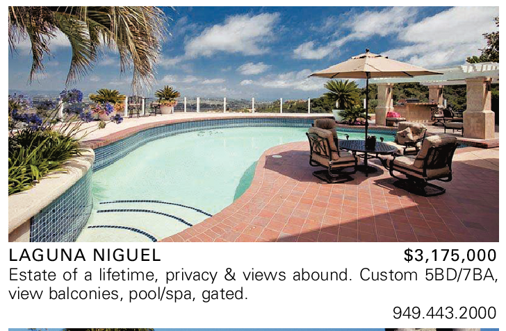 LAGUNA NIGUEL $3,175,000 Estate of a lifetime, privacy & views abound. Custom 5BD/7BA, view balconies, pool/spa, gated.