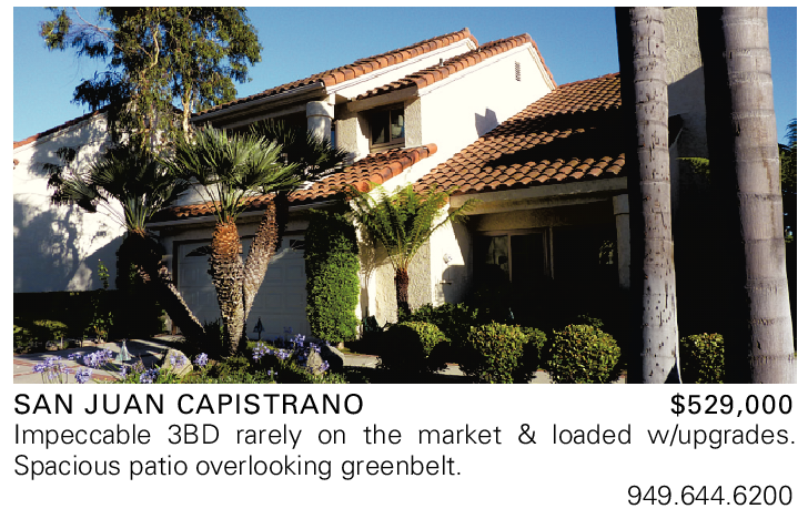 SAN JUAN CAPISTRANO $529,000 Impeccable 3BD rarely on the market & loaded w/upgrades. Spacious patio overlooking greenbelt.