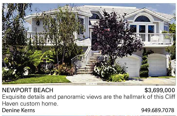 NEWPORT BEACH $3,699,000 Exquisite details and panoramic views are the hallmark of this Cliff Haven custom home. Denine Kerns 949.689.7078