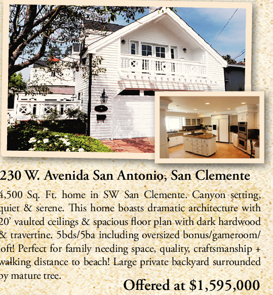 4,500 Sq. Ft. home in SW San Clemente. Canyon setting, quiet & serene. This home boasts dramatic architecture with 20’ vaulted ceilings & spacious floor plan with dark hardwood & travertine. 5bds/5ba including oversized bonus/gameroom/ loft! Perfect for family needing space, quality, craftsmanship + walking distance to beach! Large private backyard surrounded by mature tree.