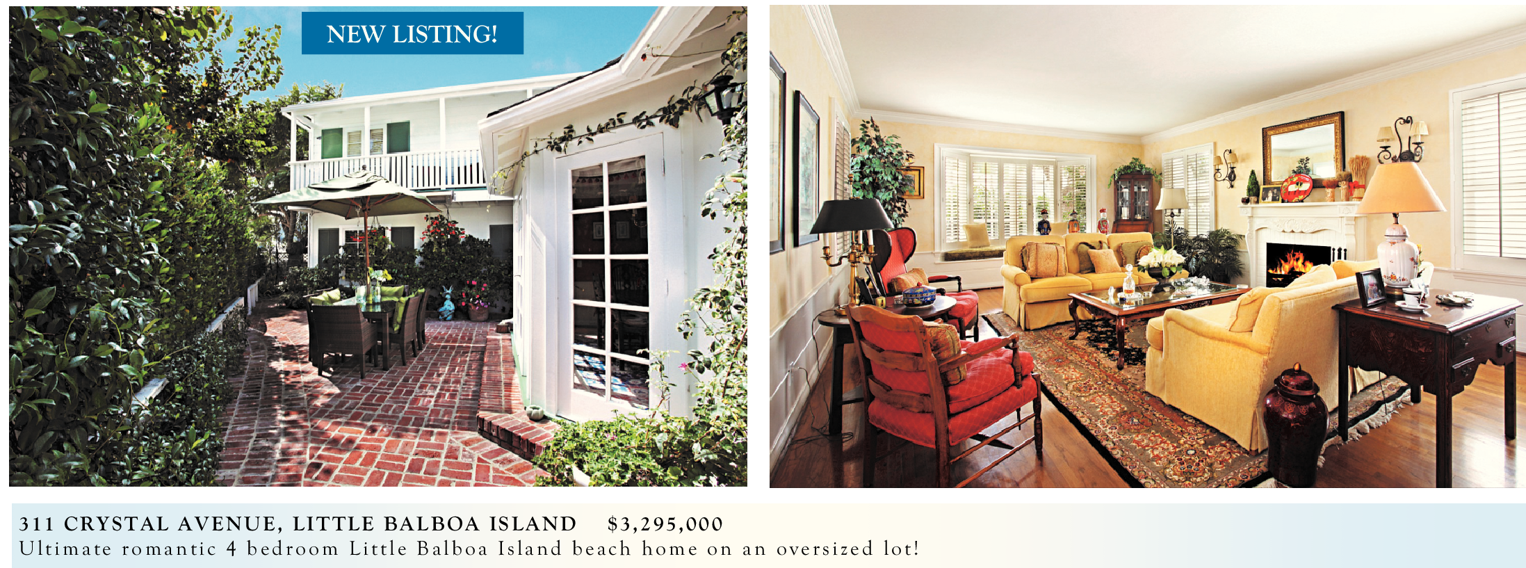 311 CRYSTAL AVENUE, LITTLE BALBOA ISLAND $3,295,000 Ultimate romantic 4 bedroom Little Balboa Island beach home on an oversized lot!