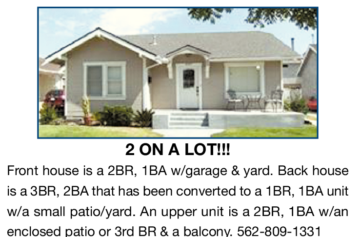 Front house is a 2BR, 1BA w/garage & yard. Back house