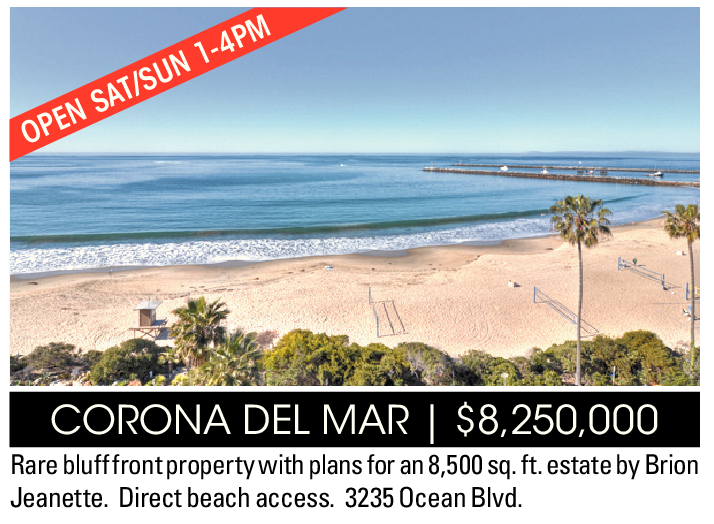 Rare bluff front property with plans for an 8,500 sq. ft. estate by Brion Jeanette. Direct beach access. 3235 Ocean Blvd.