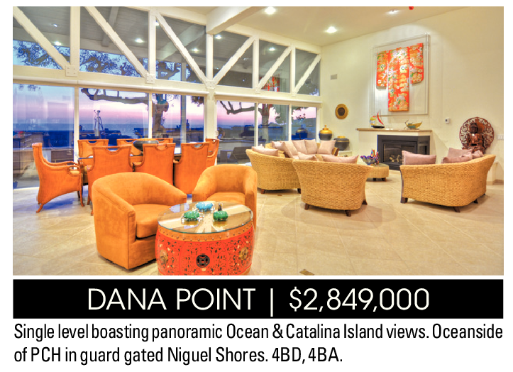 Single level boasting panoramic Ocean & Catalina Island views. Oceanside of PCH in guard gated Niguel Shores. 4BD, 4BA.