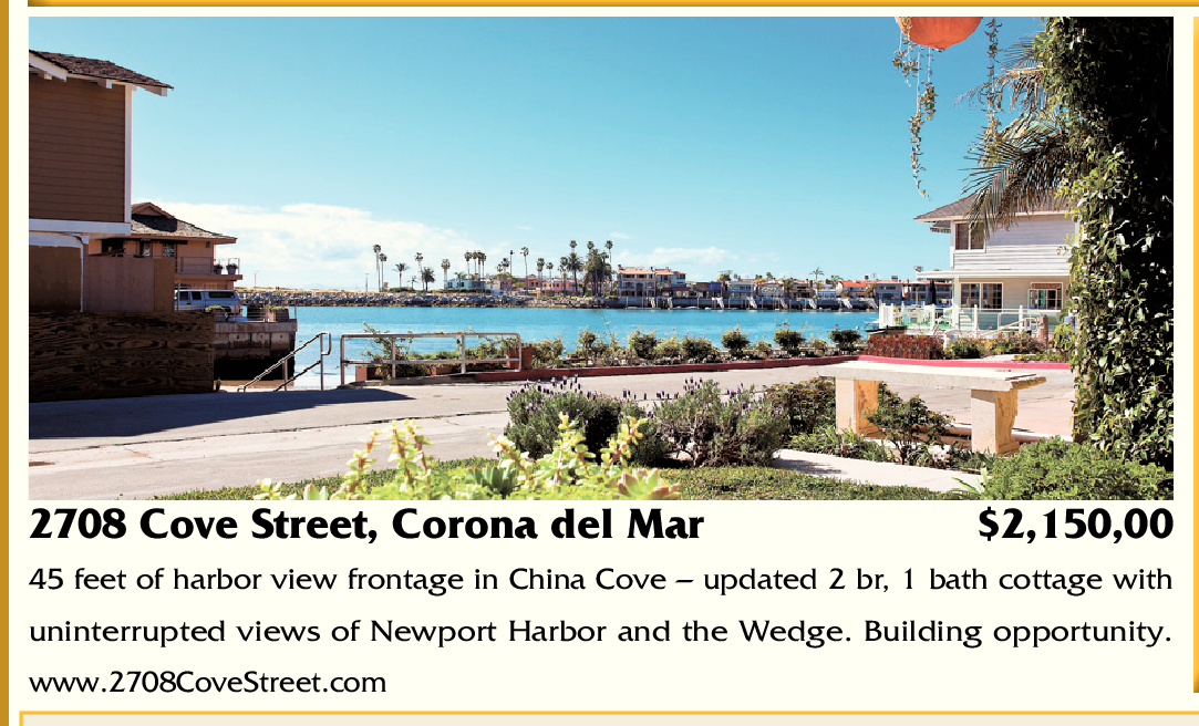 uninterrupted views of Newport Harbor and the Wedge. Building opportunity.
