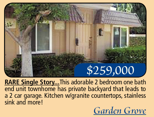 RARE Single Story...This adorable 2 bedroom one bath end unit townhome has private backyard that leads to a 2 car garage. Kitchen w/granite countertops, stainless sink and more!