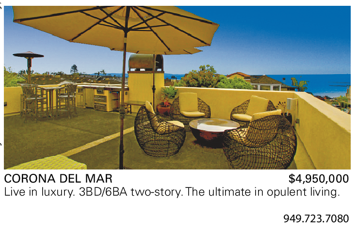 CORONA DEL MAR $4,950,000 Live in luxury. 3BD/6BA two-story. The ultimate in opulent living.