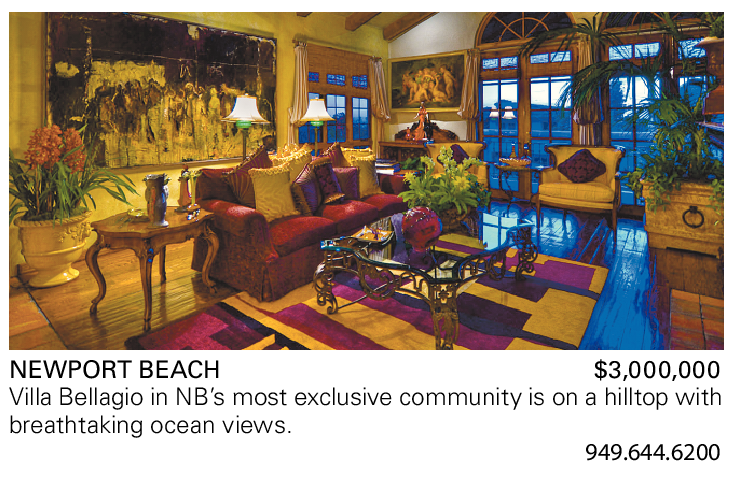 NEWPORT BEACH $3,000,000 Villa Bellagio in NB’s most exclusive community is on a hilltop with breathtaking ocean views.