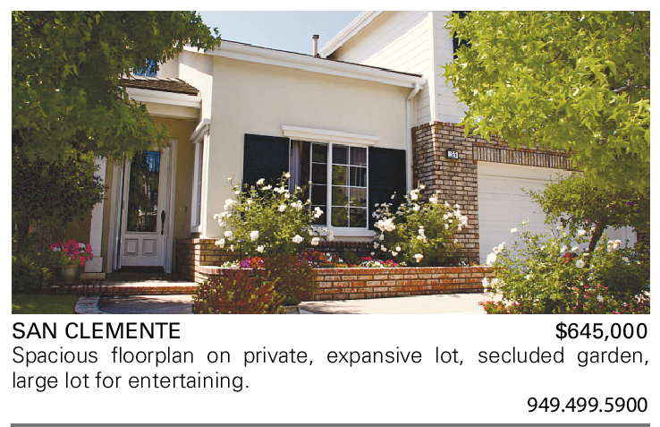 SAN CLEMENTE $645,000 Spacious floorplan on private, expansive lot, secluded garden, large lot for entertaining.