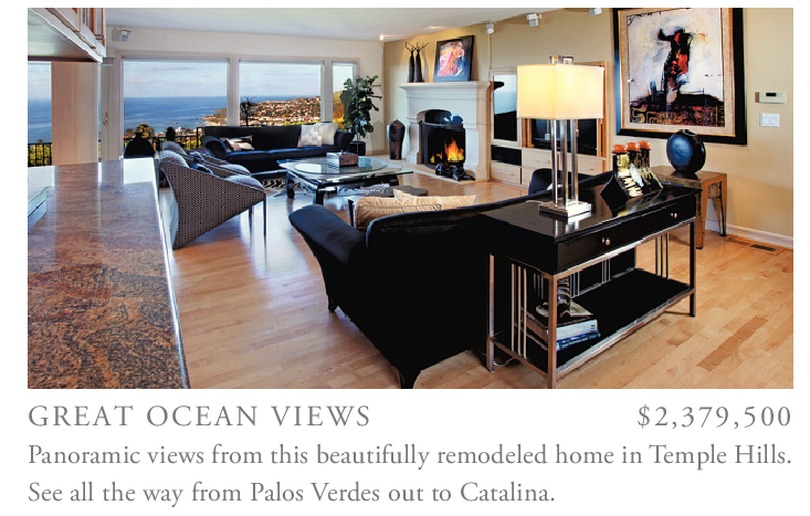 GREAT OCEAN VIEWS $2,379,500 Panoramic views from this beautifully remodeled home in Temple Hills. See all the way from Palos Verdes out to Catalina.