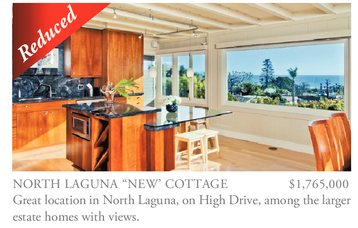 NORTH LAGUNA “NEW’ COTTAGE $1,765,000 Great location in North Laguna, on High Drive, among the larger estate homes with views.