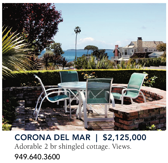 CORONA DEL MAR | $2,125,000 Adorable 2 br shingled cottage. Views. 949.640.3600