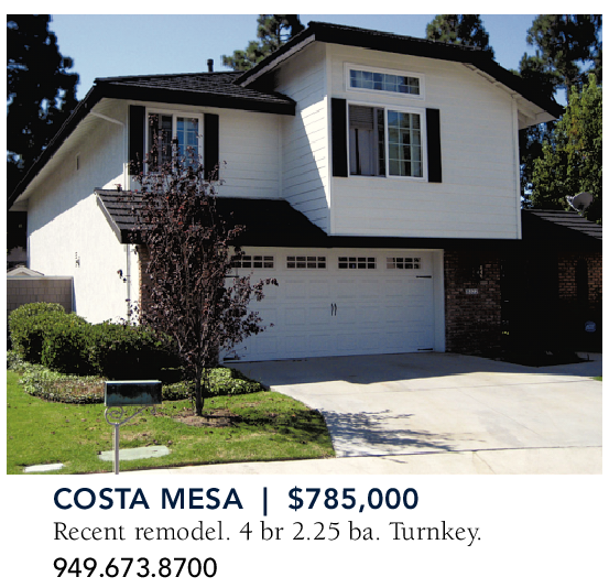 COSTA MESA | $785,000 Recent remodel. 4 br 2.25 ba. Turnkey. 949.673.8700
