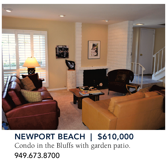 NEWPORT BEACH | $610,000 Condo in the Bluffs with garden patio. 949.673.8700
