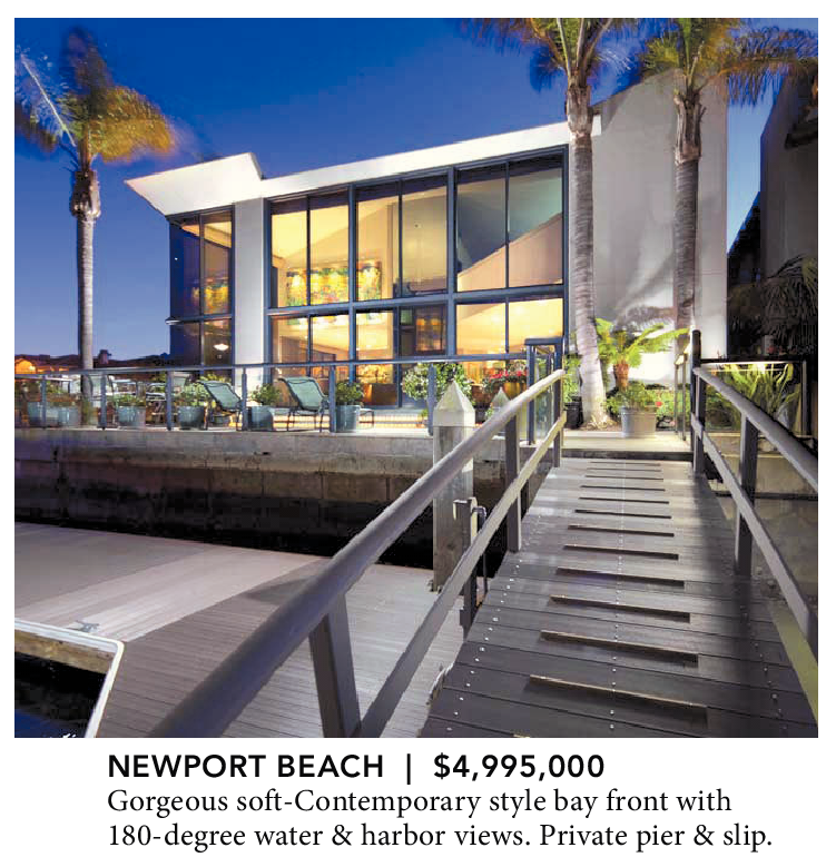 NEWPORT BEACH | $4,995,000 Gorgeous soft-Contemporary style bay front with 180-degree water & harbor views. Private pier & slip.
