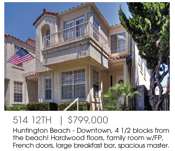 514 12TH | $799,000 Huntington Beach - Downtown, 4 1/2 blocks from the beach! Hardwood floors, family room w/FP, French doors, large breakfast bar, spacious master.