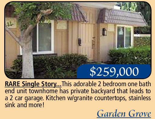 RARE Single Story...This adorable 2 bedroom one bath end unit townhome has private backyard that leads to a 2 car garage. Kitchen w/granite countertops, stainless sink and more!