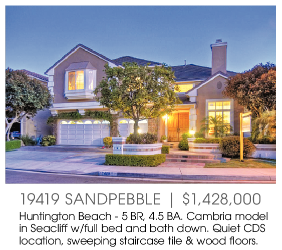 19419 SANDPEBBLE | $1,428,000 Huntington Beach - 5 BR, 4.5 BA. Cambria model in Seacliff w/full bed and bath down. Quiet CDS location, sweeping staircase tile & wood floors.