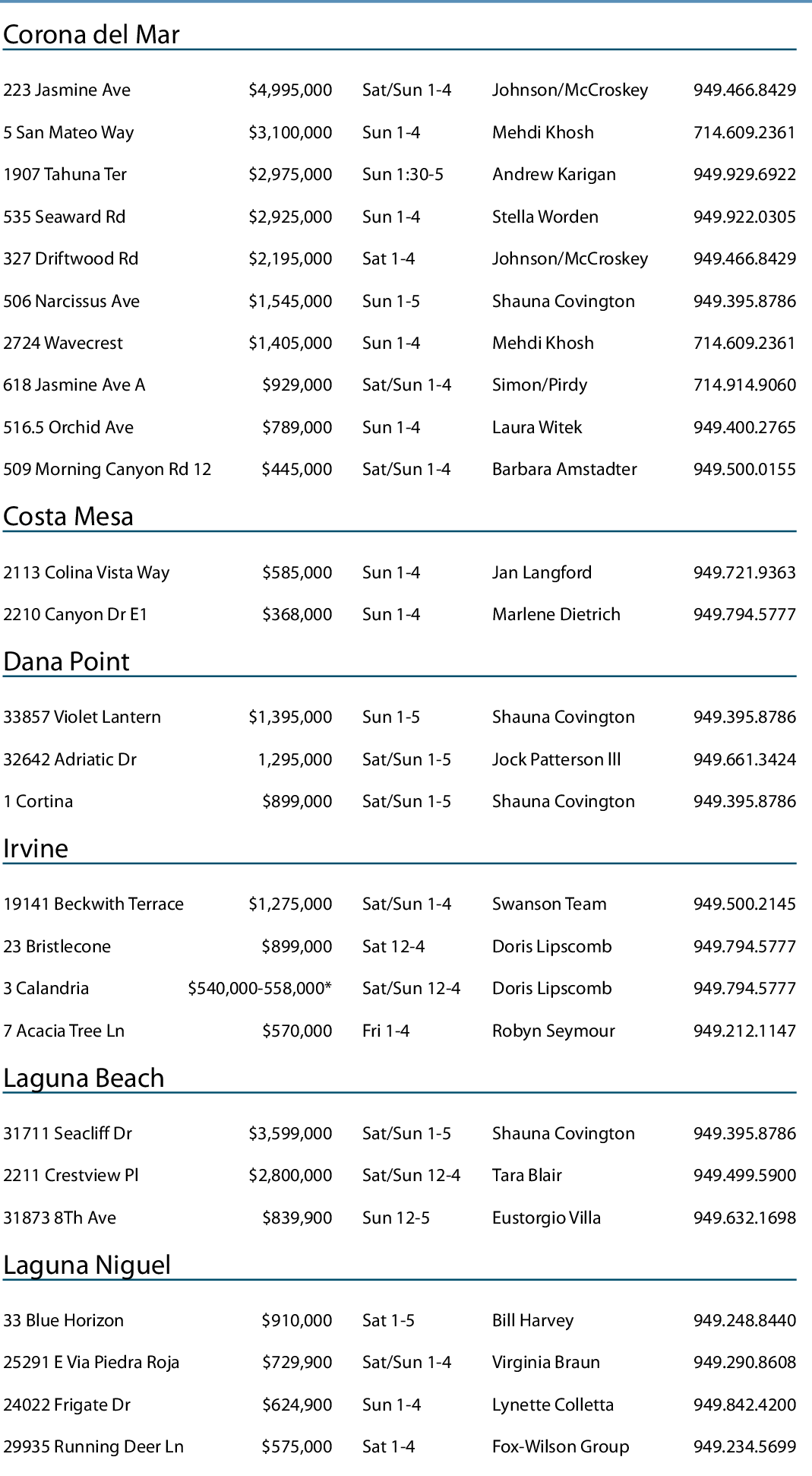 31711 Seacliff Dr $3,599,000 Sat/Sun 1-5 Shauna Covington 949.395.8786