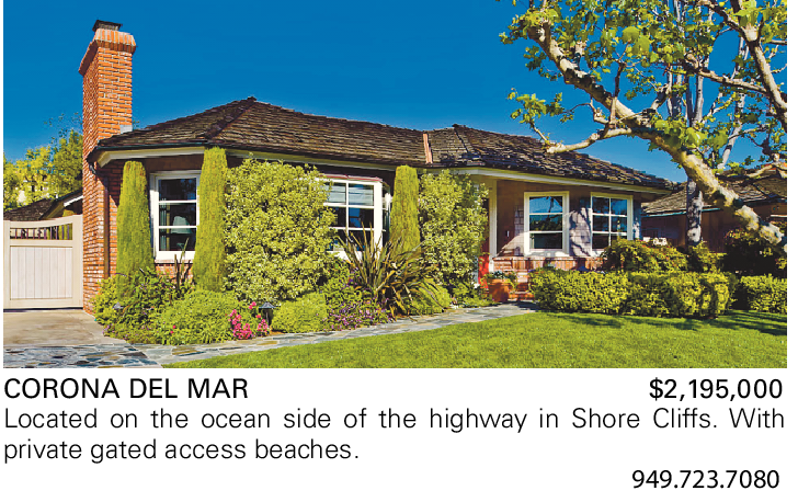 CORONA DEL MAR $2,195,000 Located on the ocean side of the highway in Shore Cliffs. With private gated access beaches.