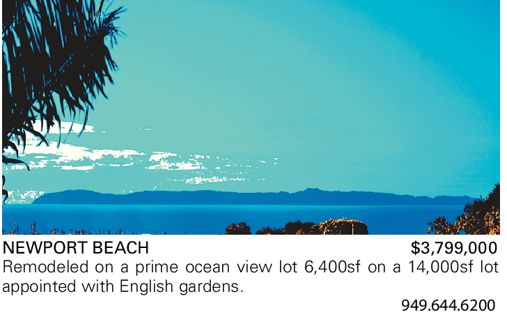 NEWPORT BEACH $3,799,000 Remodeled on a prime ocean view lot 6,400sf on a 14,000sf lot appointed with English gardens.