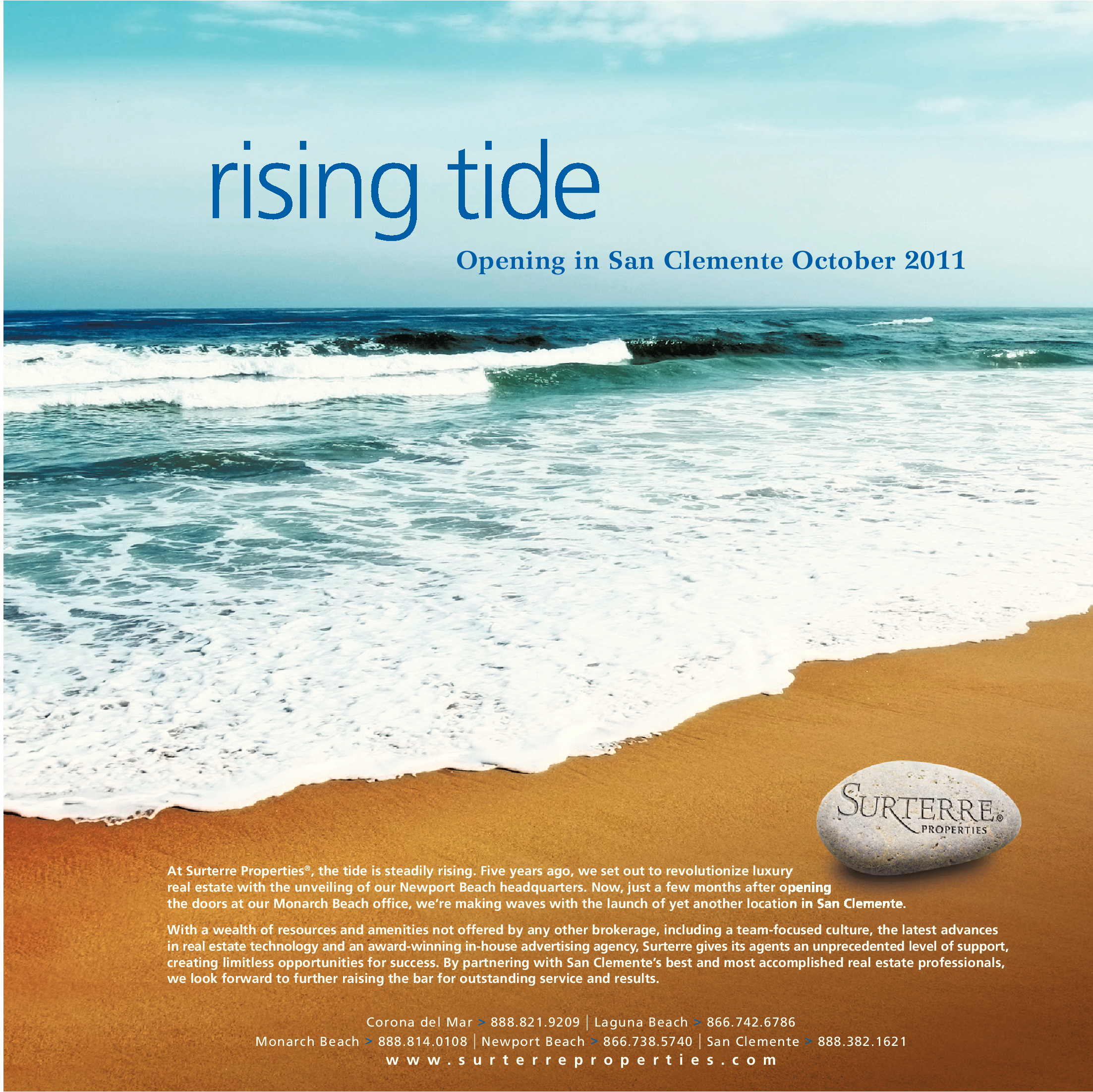 At Surterre Properties ® , the tide is steadily rising. Five years ago, we set out to revolutionize luxury real estate with the unveiling of our Newport Beach headquarters. Now, just a few months after opening the doors at our Monarch Beach office, we’re making waves with the launch of yet another location in San Clemente.
