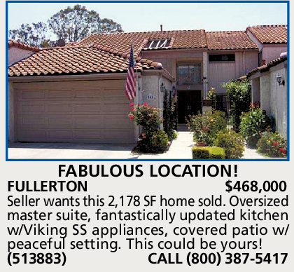 FULLERTON $468,000 Seller wants this 2,178 SF home sold. Oversized master suite, fantastically updated kitchen w/Viking SS appliances, covered patio w/ peaceful setting. This could be yours! (513883) CALL (800) 387-5417