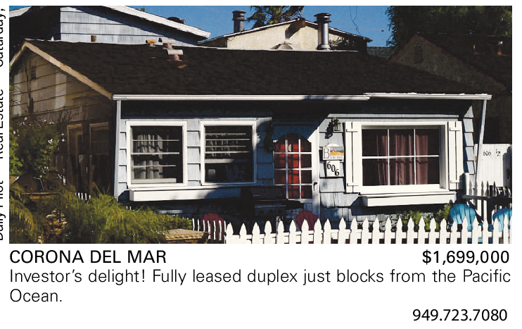CORONA DEL MAR $1,699,000 Investor’s delight! Fully leased duplex just blocks from the Pacific Ocean.