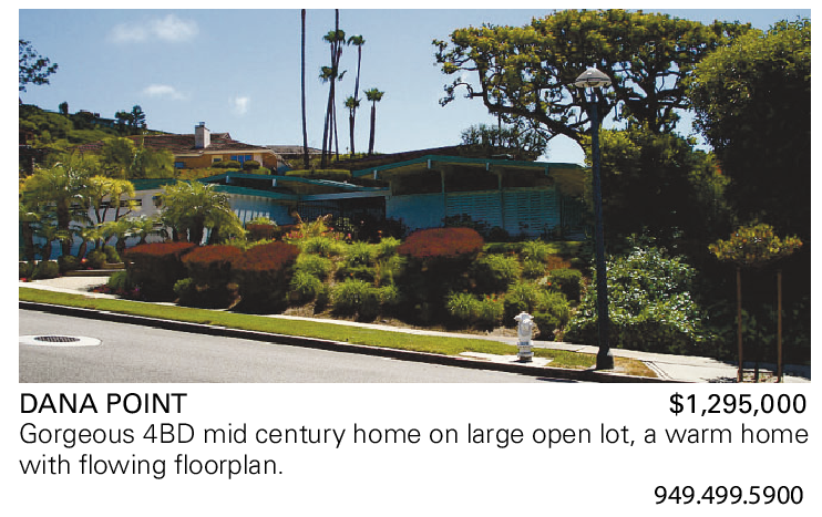 DANA POINT $1,295,000 Gorgeous 4BD mid century home on large open lot, a warm home with flowing floorplan.