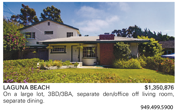 LAGUNA BEACH $1,350,876 On a large lot, 3BD/3BA, separate den/office off living room, separate dining.