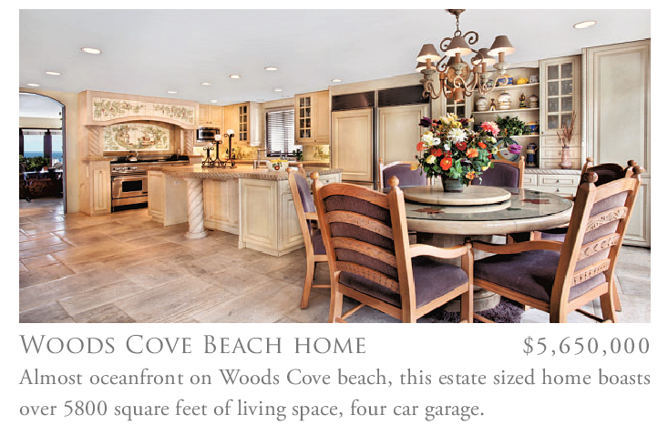 Woods Cove Beach home $5,650,000 Almost oceanfront on Woods Cove beach, this estate sized home boasts over 5800 square feet of living space, four car garage.