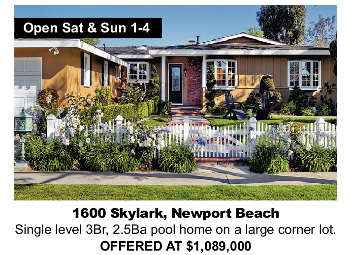 1600 Skylark, Newport Beach Single level 3Br, 2.5Ba pool home on a large corner lot.
