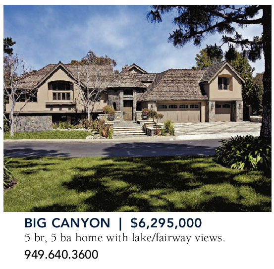 BIG CANYON | $6,295,000 5 br, 5 ba home with lake/fairway views. 949.640.3600