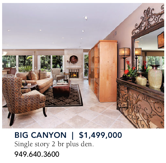 BIG CANYON | $1,499,000 Single story 2 br plus den. 949.640.3600