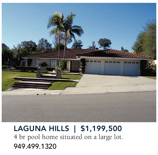 LAGUNA HILLS | $1,199,500 4 br pool home situated on a large lot. 949.499.1320