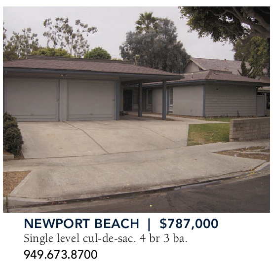 NEWPORT BEACH | $787,000 Single level cul-de-sac. 4 br 3 ba. 949.673.8700