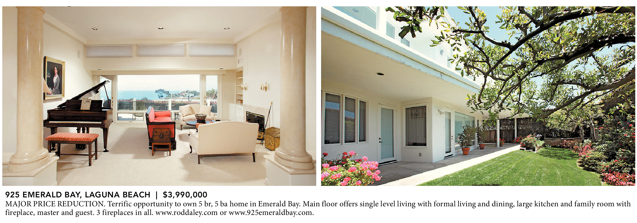925 EMERALD BAY, LAGUNA BEACH | $3,990,000 MAJOR PRICE REDUCTION. Terrific opportunity to own 5 br, 5 ba home in Emerald Bay. Main floor offers single level living with formal living and dining, large kitchen and family room with fireplace, master and guest. 3 fireplaces in all. www.roddaley.com or www.925emeraldbay.com.