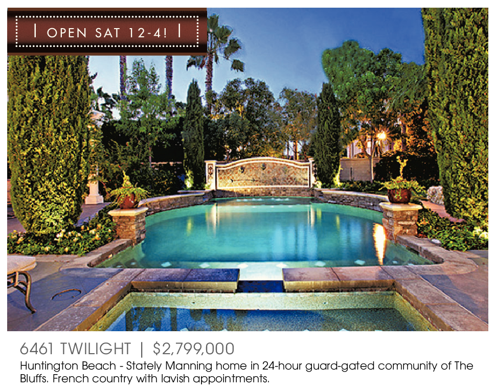 6461 TWILIGHT | $2,799,000 Huntington Beach - Stately Manning home in 24-hour guard-gated community of The Bluffs. French country with lavish appointments.