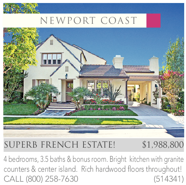 SUPERB FRENCH ESTATE! $1,988,800 4 bedrooms, 3.5 baths & bonus room. Bright kitchen with granite counters & center island. Rich hardwood floors throughout! CALL (800) 258-7630 (514341)
